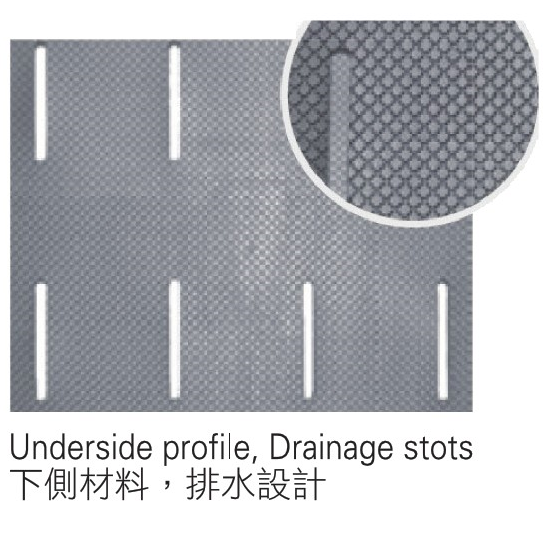 • Drainage slots and Tapered trip-preventing edges